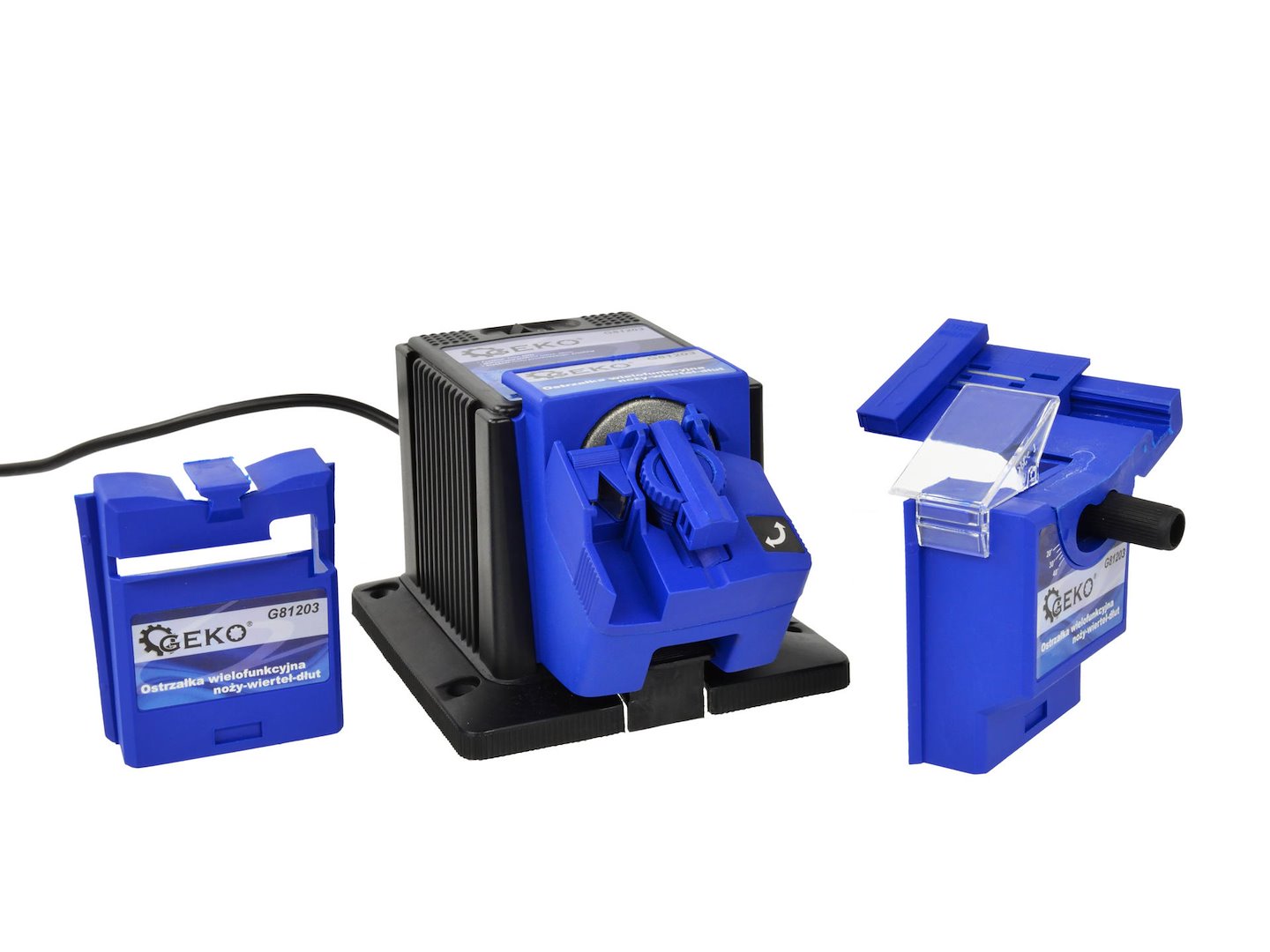 • Enhetens multifunksjonalitet lar deg slipe kniver, sakser, driller, meisler og høvler.