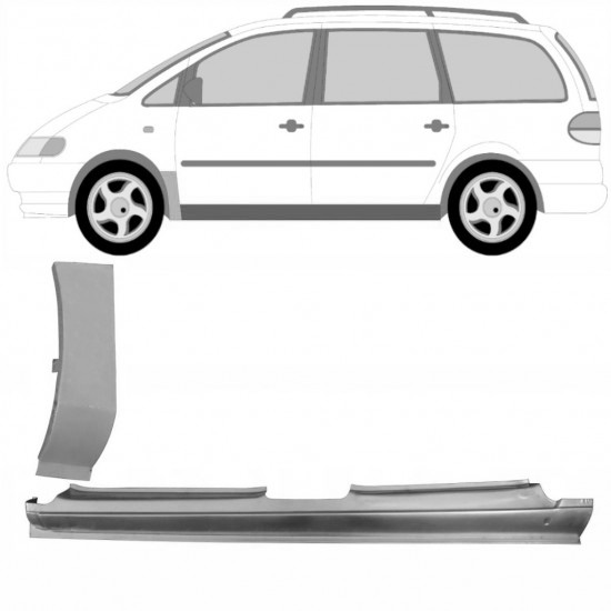 Terskel Med Reparasjonsplate Framskjerm Volkswagen Sharan 1995-2010 Venstre Sett