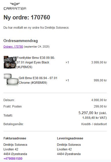Tillegg til bestillinge 170760